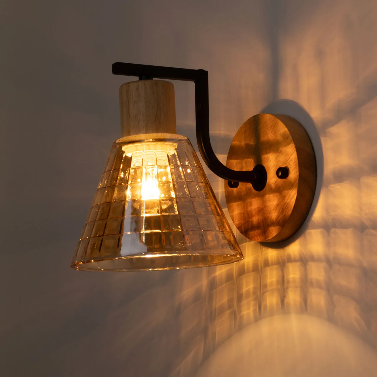 Основание/ металл/ черный Плафон/ стекло/ шампань Декор/ дерево/ натуральное